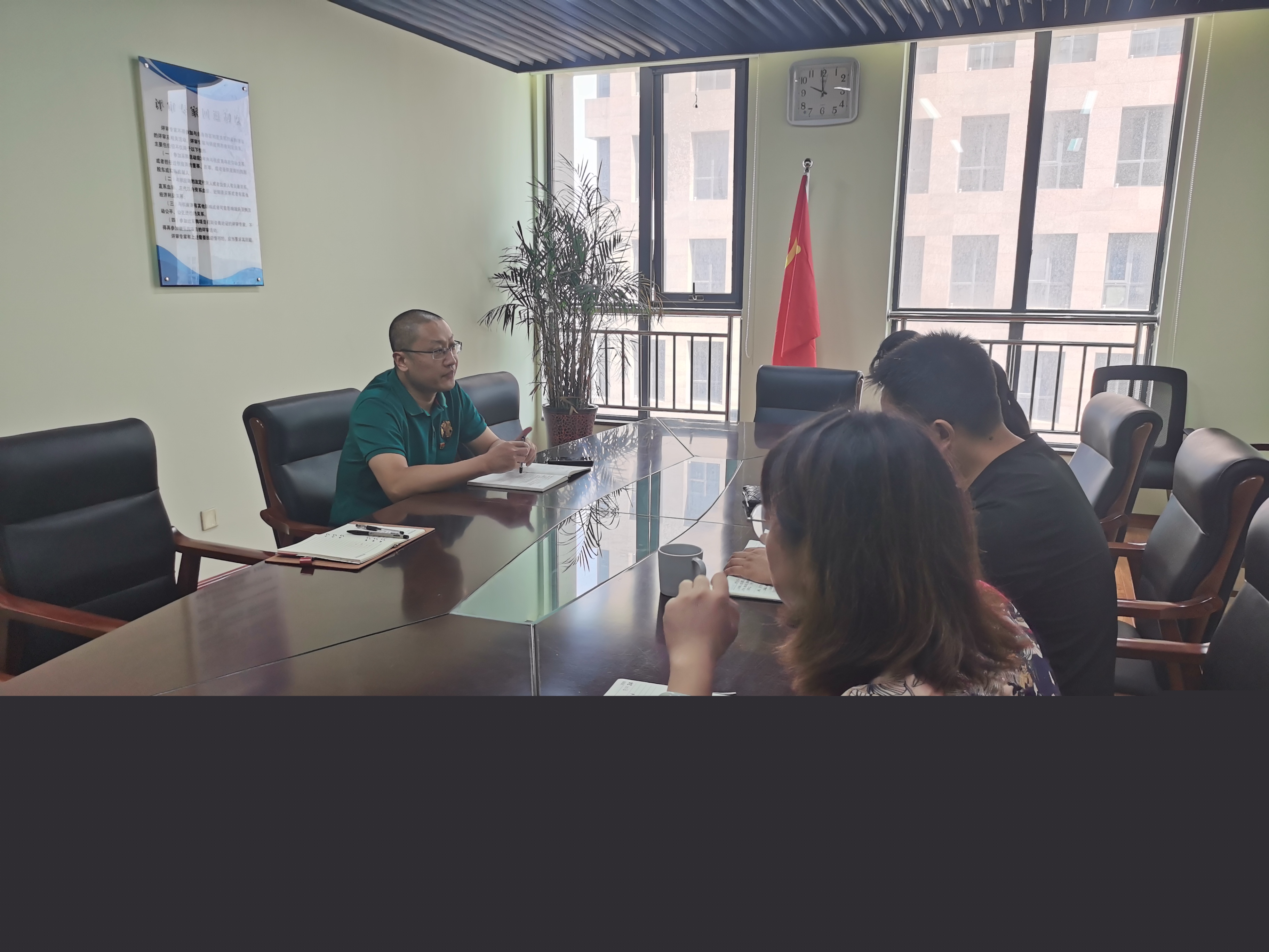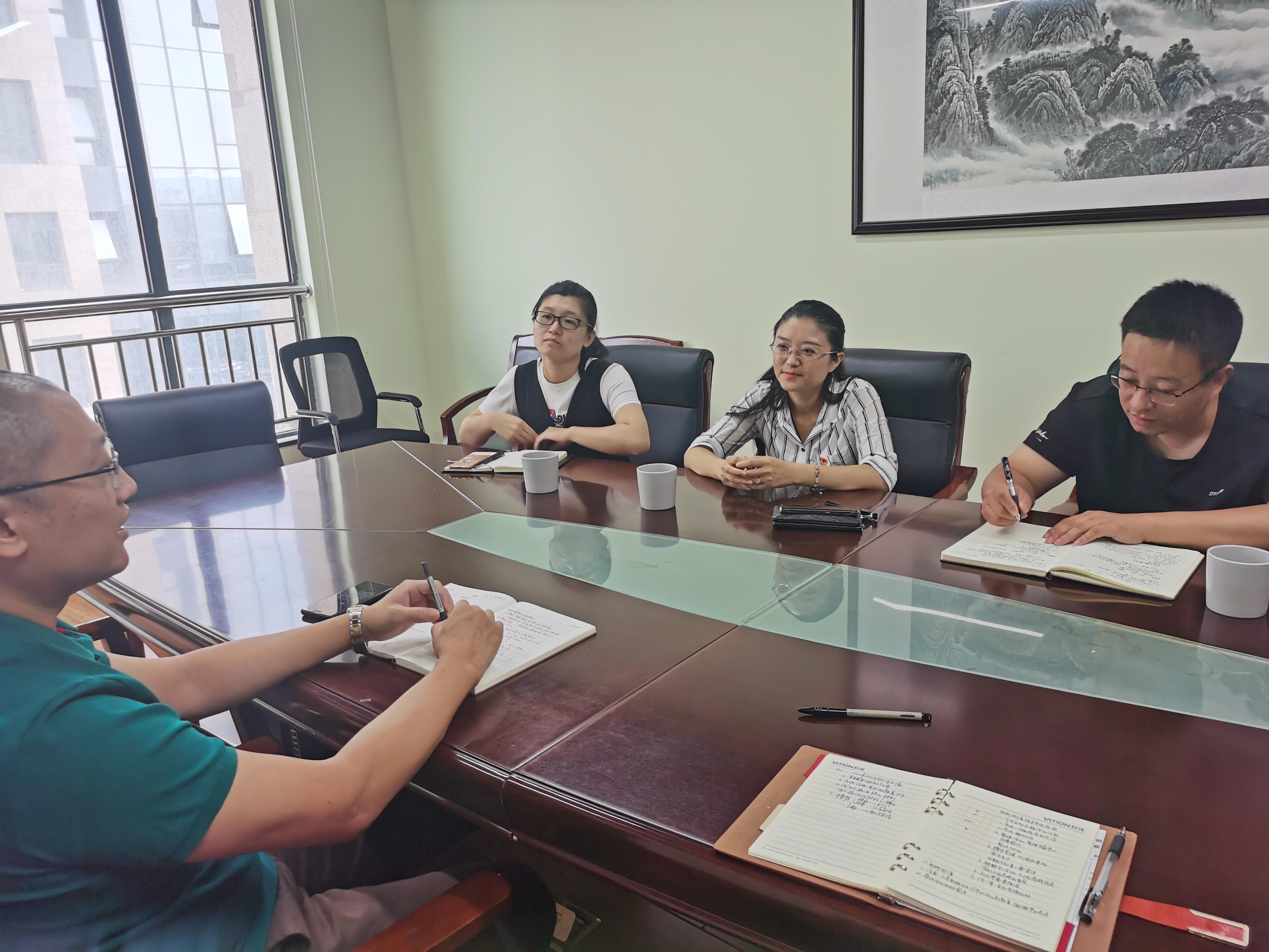 支部書(shū)記張銳向甸柳新村街道黨建工作辦公室副主任李輝、街道團(tuán)工委書(shū)記楊歆介紹了公司黨建墻及統(tǒng)戰(zhàn)墻的打造情況,隨后雙方進(jìn)行了深入座談交流。