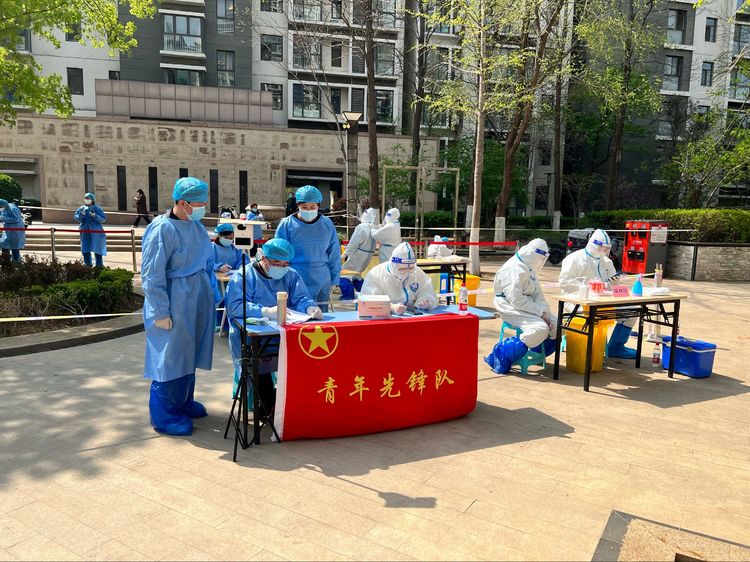 “社區(qū)呼叫,我們報到”。在防范區(qū)核酸檢測的前一天,山東建工集團、山東省國際招標有限公司、齊魯銀行歷下支行、濟南靳武體育文化發(fā)展有限公司等單位,第一時間來到社區(qū),參與物資籌備、門崗執(zhí)勤、上門宣傳等工作。同時,為了盡量減少對群眾出行帶來的不便,他們與社區(qū)工作人員一起連夜搭建采樣點。雖然春寒料峭,大風驟起,但是他們?nèi)匀涣x無反顧,一往無前。風中,他們的身影讓人眼眶溫熱,心頭一暖。
