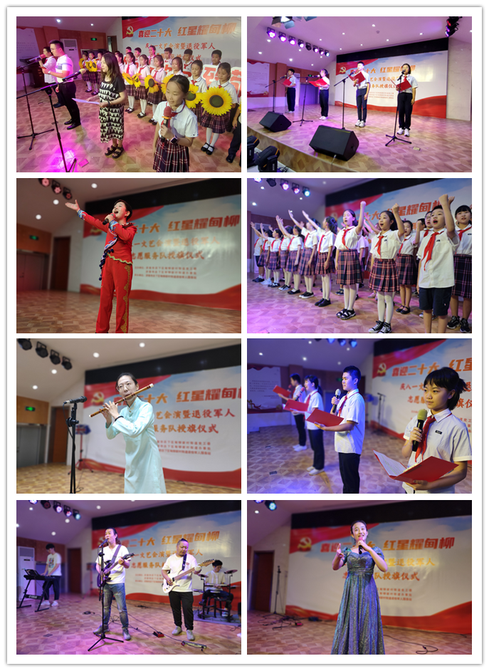 轄區(qū)學(xué)校和居民也載歌載舞來歡慶八一這一喜慶、豪情時(shí)刻。舞蹈《黨旗更鮮艷》、《當(dāng)過兵的人》,朗誦《讓鮮紅的八一軍旗高高飄揚(yáng)》、《精神的力量》、《請(qǐng)黨放心,強(qiáng)國有我》,獨(dú)唱:《紅高梁青紗帳》、《萬疆》,合唱《追尋》、《珊瑚頌》,樂器獨(dú)奏《我的祖國》在現(xiàn)場(chǎng)掀起一波又一波的演出高潮。