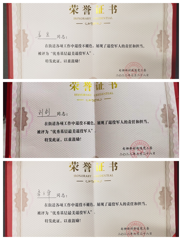 ——此次活動(dòng)中姜宏、劉劍、李士華同志被評(píng)為“優(yōu)秀基層最美退役軍人”